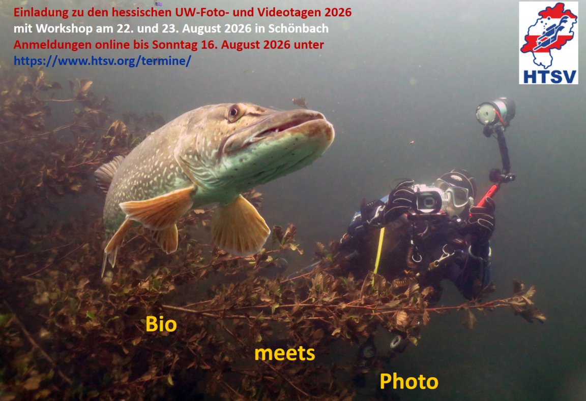 2020 finden die hessischen UW-Foto & Videotage in Schönbach am 15./16.08.2020 statt. Anmeldungen wie immer im HTSV Web.